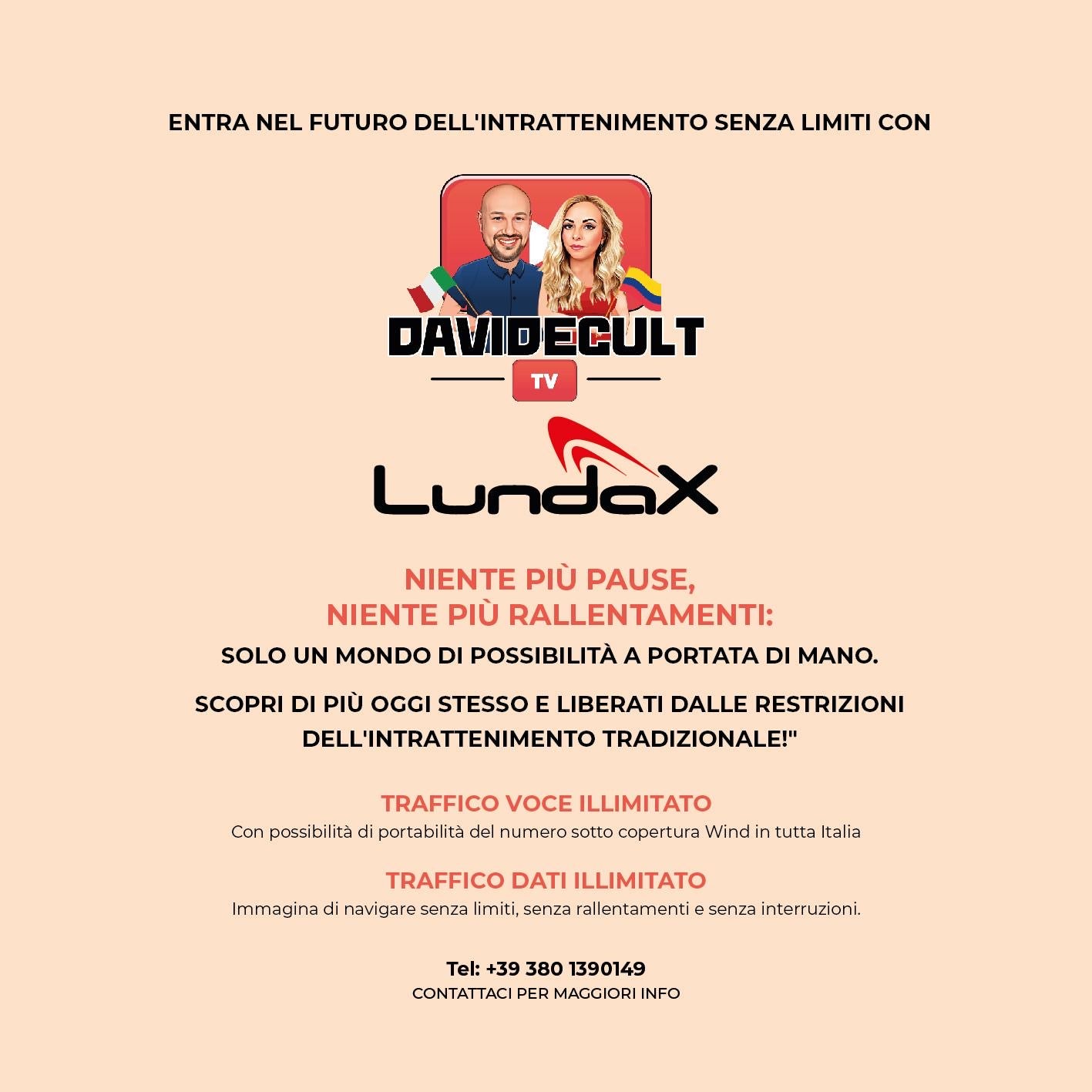 • Un Mese Gratuito con lo Youtuber Trapanese Davidecult TV: Esplora la connettività avanzata della SIM LundaX 5G/4G, nata dalla collaborazione esclusiva con Davidecult TV, e goditi un mese di servizio gratuito.